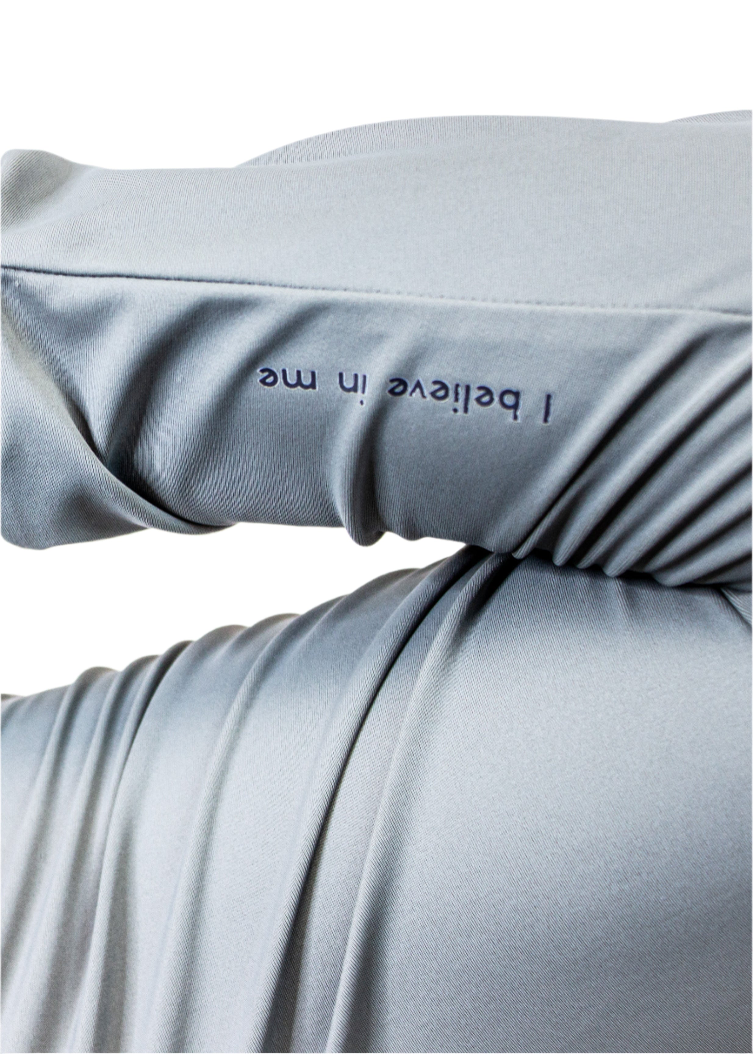 Pep Talk: Motivational message “I BELIEVE IN ME” on left cuff.
